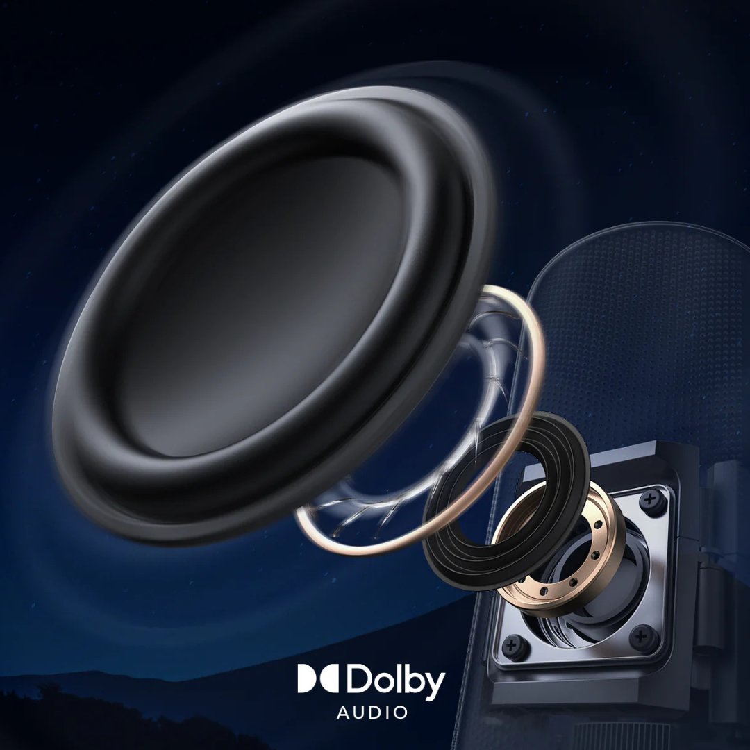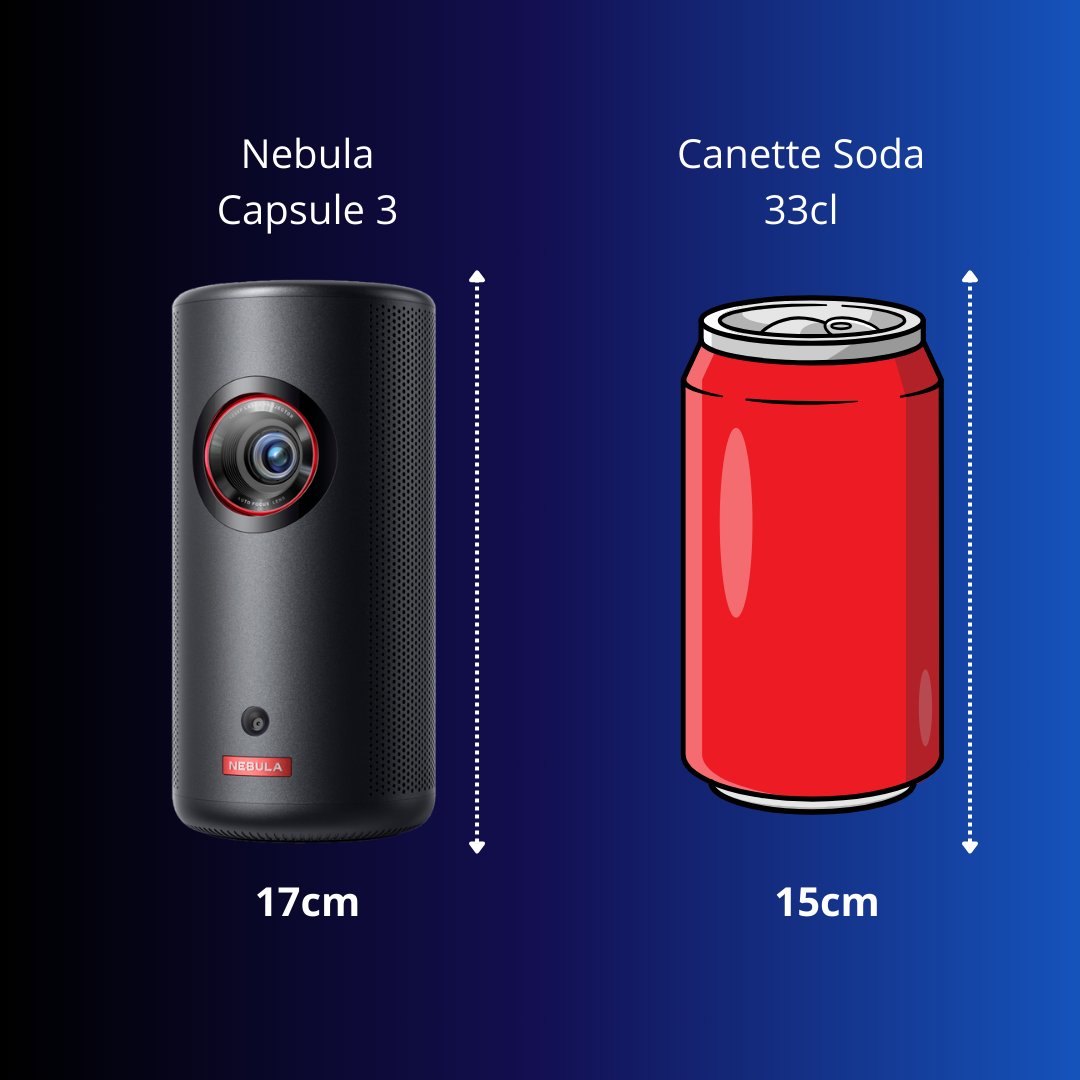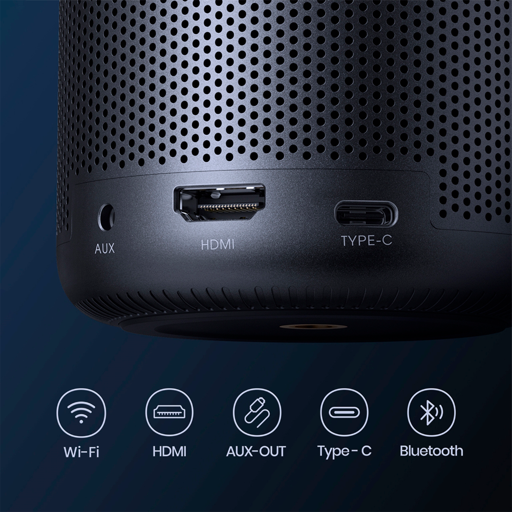 Ce vidéoprojecteur est extrêmement compact, avec une taille comparable à celle d’une canette. Grâce à son format réduit, il est facile à transporter et à placer n’importe où, que ce soit dans le salon, une chambre ou même en déplacement. Malgré ses dimensions compactes, il offre des performances de projection impressionnantes et conserve toutes les fonctionnalités essentielles, comme la connexion Wi-Fi, Bluetooth et le son Dolby Audio intégré. C’est l’option idéale pour ceux qui recherchent un projecteur puissant mais discret, qui s’intègre facilement dans tous les espaces.