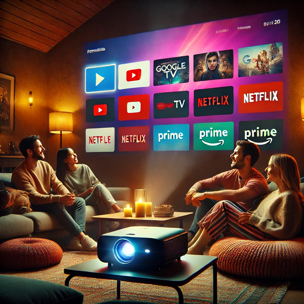Ce vidéoprojecteur est compatible avec Google TV, ce qui permet d'accéder facilement aux principales plateformes de streaming comme Netflix, YouTube, Amazon Prime Video, Disney+, et bien d'autres. Grâce à cette intégration, il est possible de diffuser directement des films, des séries, et des vidéos en ligne sans avoir besoin d’un appareil supplémentaire, comme une box ou un lecteur multimédia. Il suffit de se connecter au Wi-Fi pour naviguer entre les différentes applications disponibles sur Google TV et profiter du contenu en streaming dans un format grand écran.